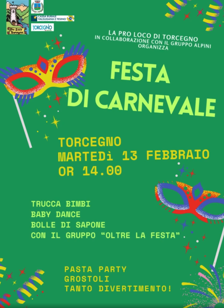 Cos'è Dalle ore 14:oo la Pro Loco Torcegno organizza, insieme al Gruppo Alpini e al gruppo "Oltre la festa", tanto divertimento.